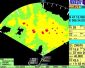 Das Radarbild wird farbig auf schwarz hinterlegtem Display angezeigt.